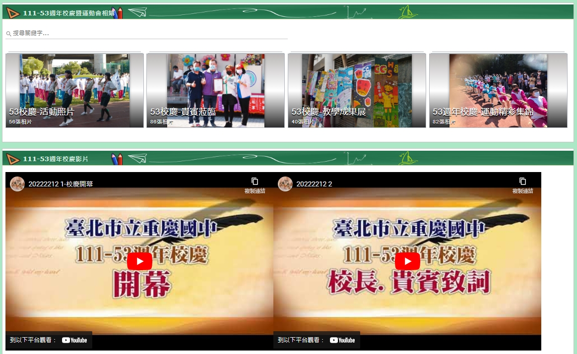111-53週年校慶 活動相簿與影片,請點下方連結 http://www.cchs.nss.tp.edu.tw/nss/p/PHOTOS