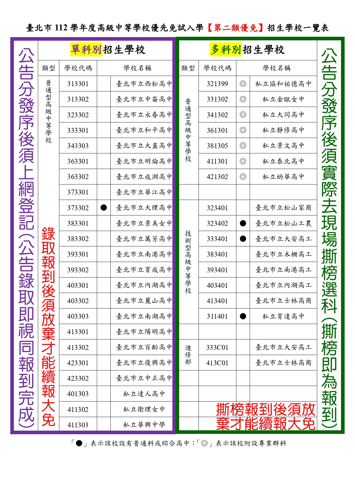 報名單科別學校:06.16務必上優免官網查詢是否需要登記,不登記即是放棄。