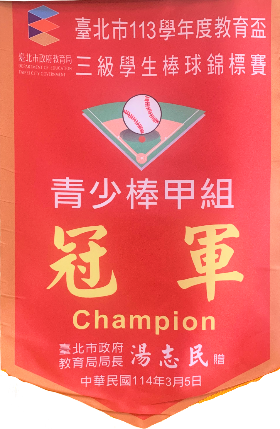 恭喜 本校棒球隊參加113學年度 教育盃三級學生棒球錦標賽 青少棒甲組 榮獲冠軍