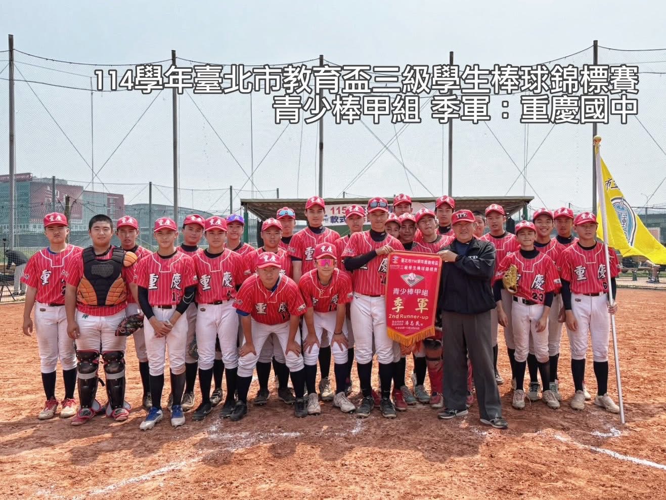 恭喜 本校棒球隊參加114學年度 教育盃三級學生棒球錦標賽 青少棒甲組 榮獲季軍